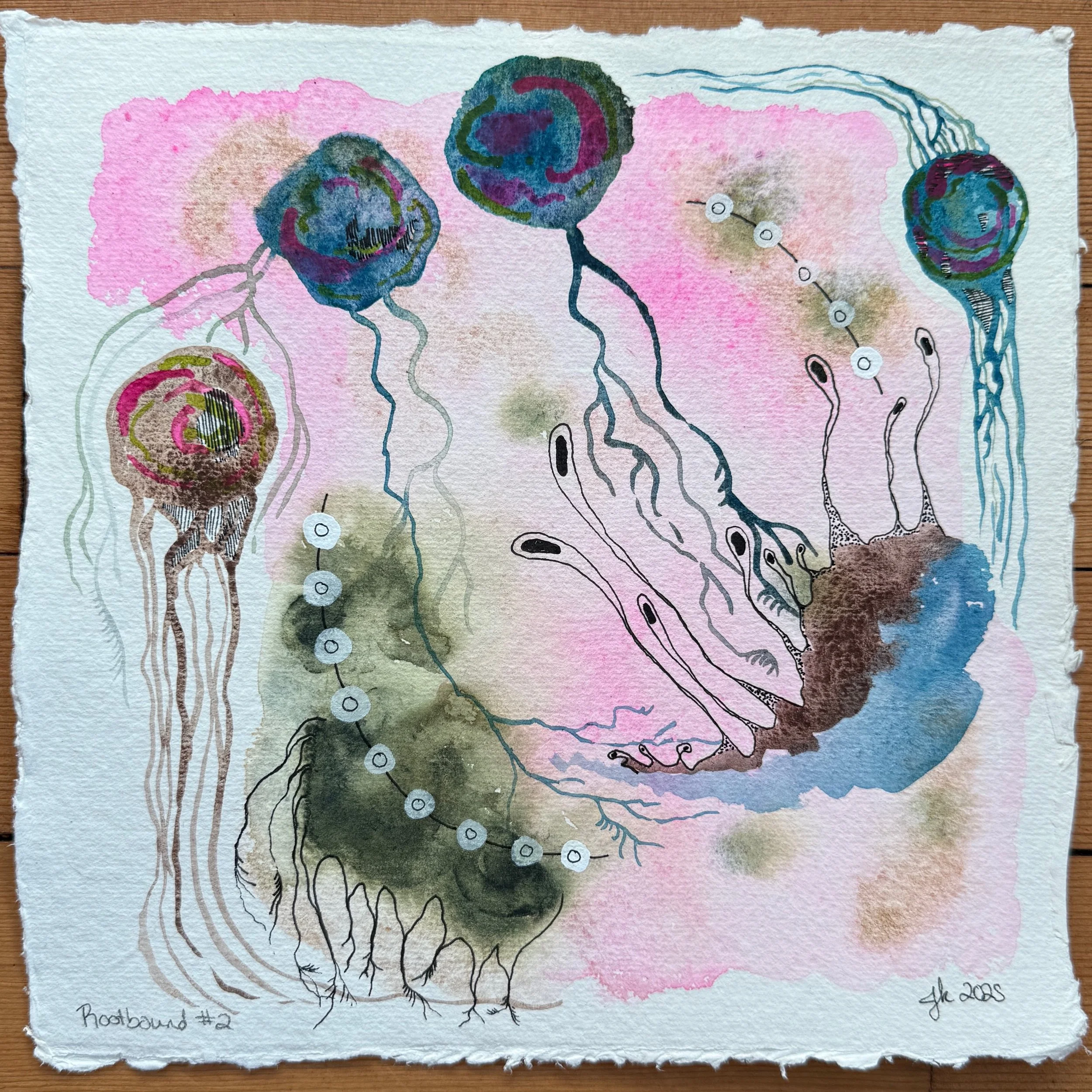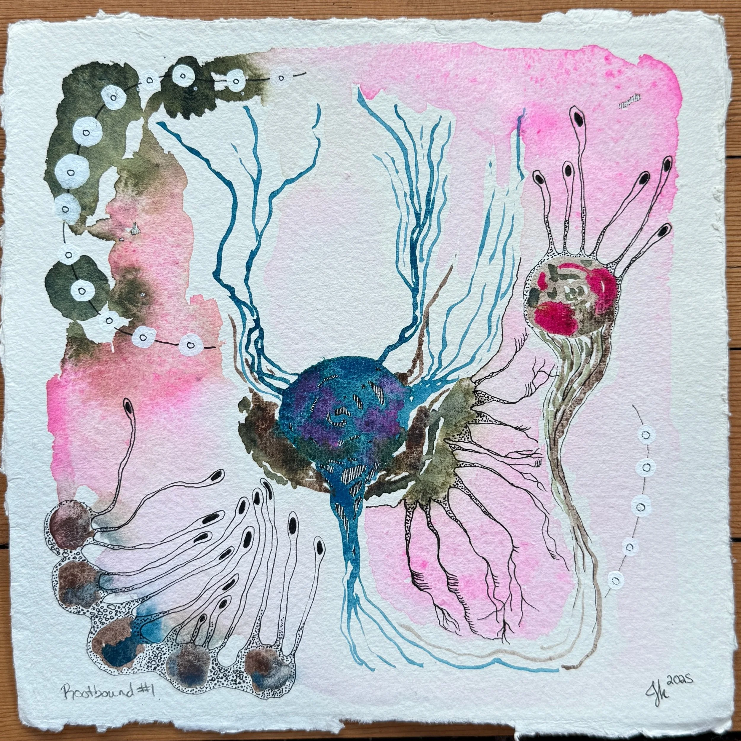 Your Actions Touch Every Part of Me // I Pray the Lord My Soul to Take: 2025. 8" x 8", Watercolor and Ink on Watercolor Paper